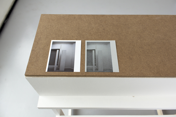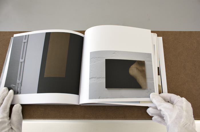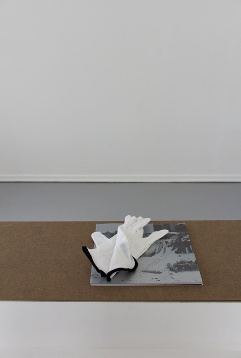 AO0115 / 2015 / Holz / Wandfrabe / 2 Fotos 10x12 cm / Handschuhe / Publikation: F 00115