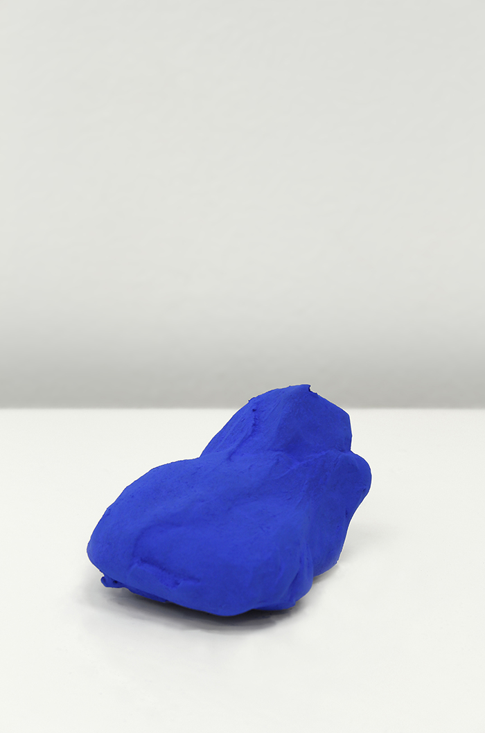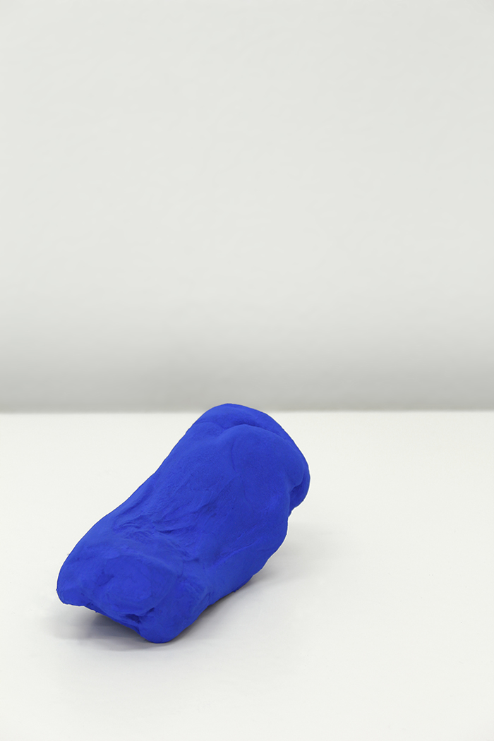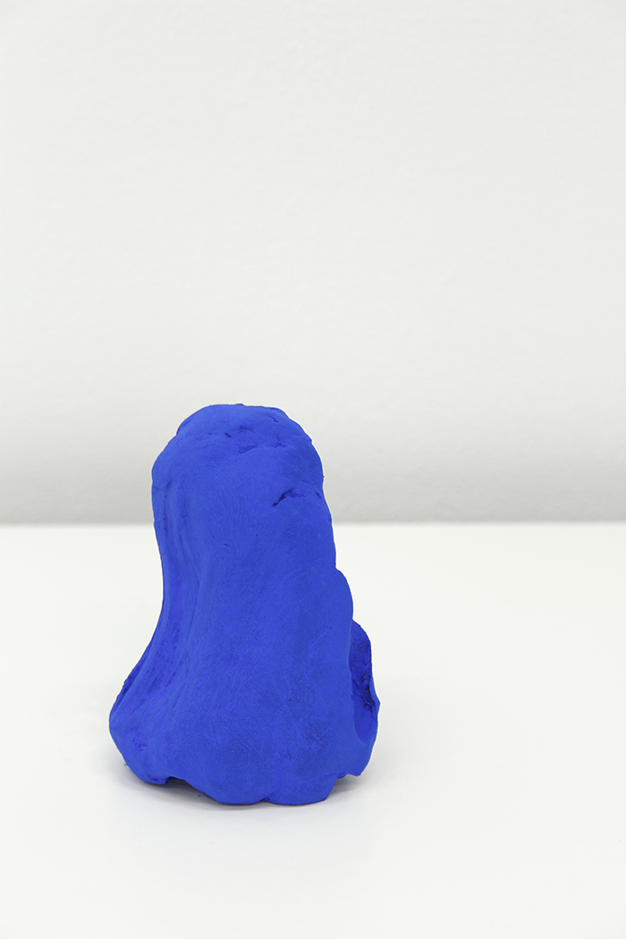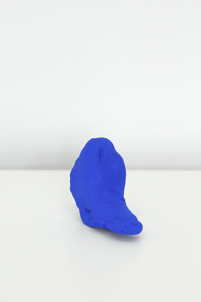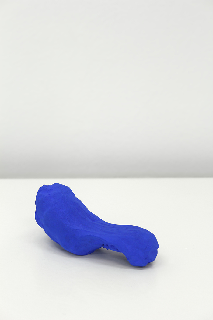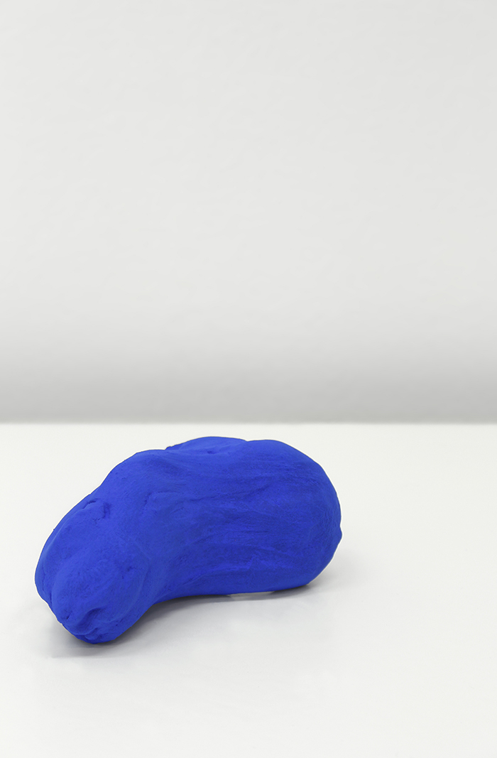 Clayfuckin .1-.6 are imprints of the artist's pubic area. The objects are pollinated with Yves-Klein blue pigment and are named in reference to Monica Bonvincinis work Wallfuckin`.