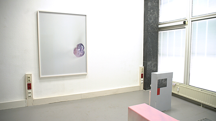 InH00118Steven / 2018 / installation shot: MDF, paint, photography, architecture of the exhibition space (Flexzone)