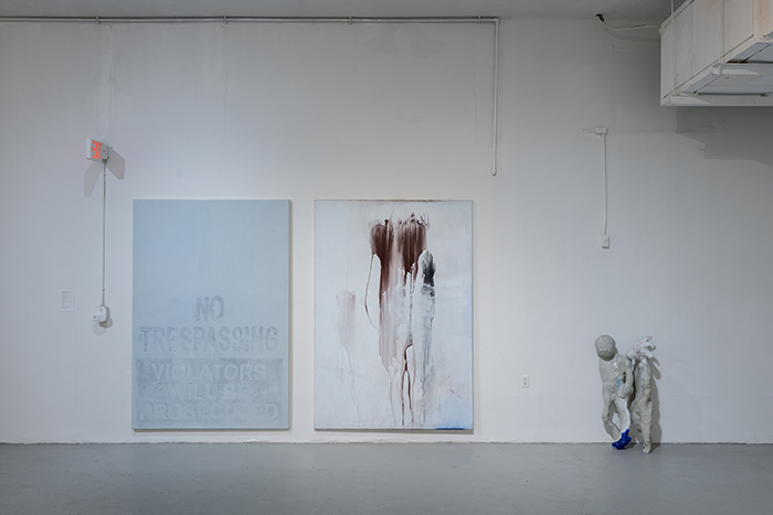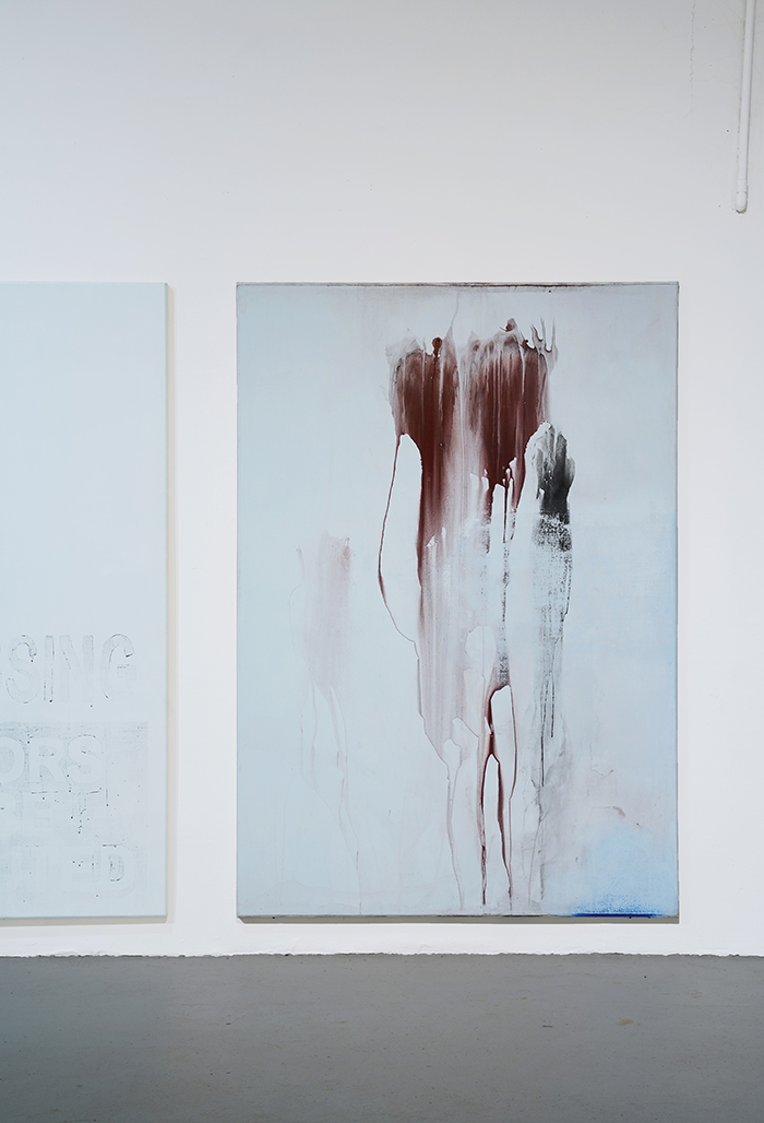 Installation view: No Trespassing 00425.2, pigment, acrylic medium on canvas, 150 x 221 cm, 2025